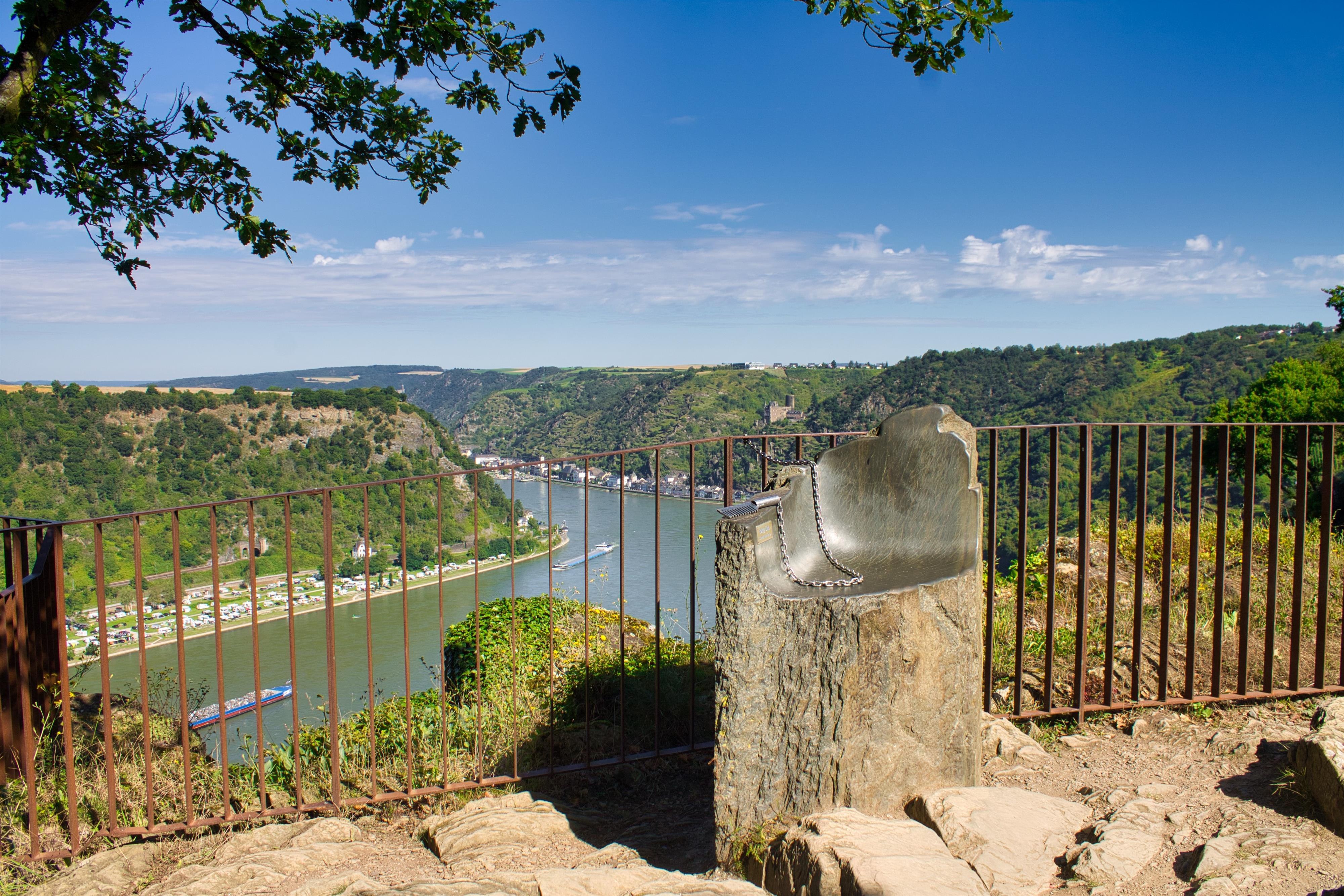 Der Loreley-Thron ist ein Fotopoint mit tollen Ausblick ins Rheintal. Man kann auf dem Thron Platz nehmen und sich mit dem Loreley Kamm die Haare kämmen.