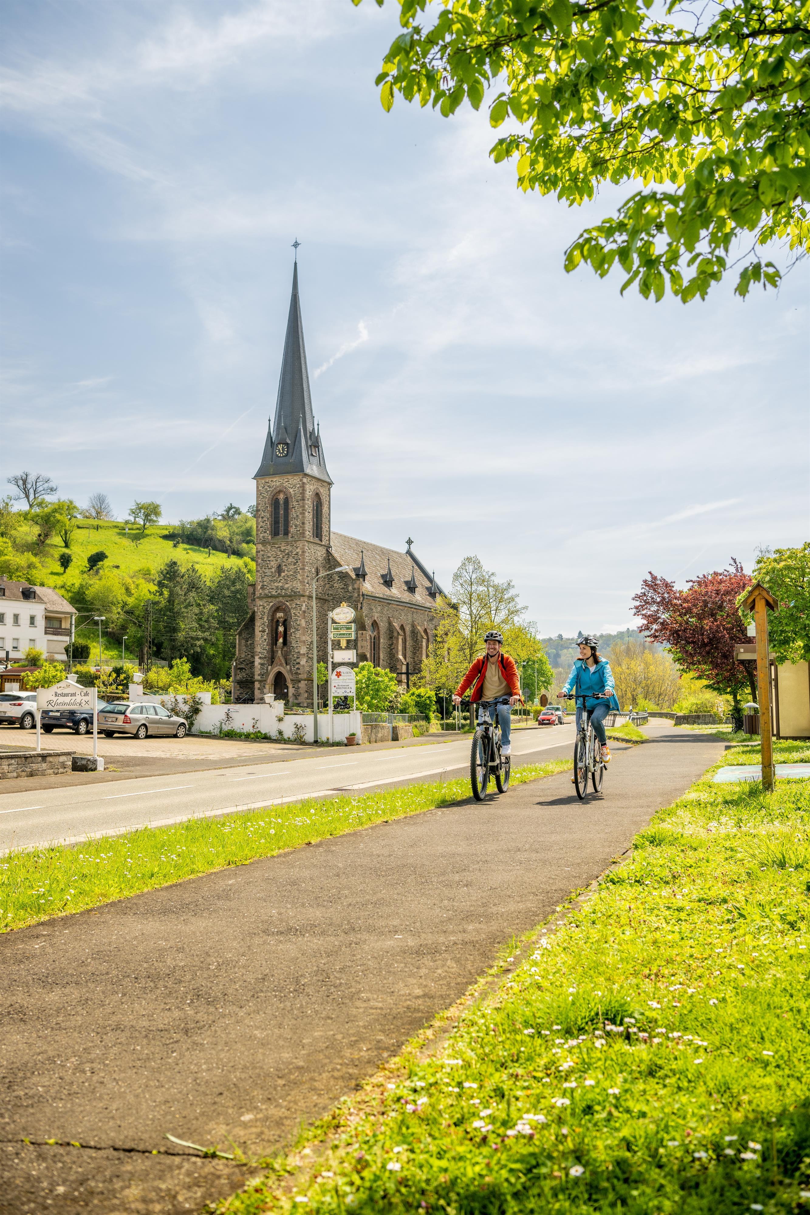 Die katholische Kirche wurde 1897 im Stil der Neugotik erbaut. Hier finden regelmäßig Gottesdienste statt. Als Radwegekirche bietet sie allen Radfahrerinnen und Radfahrern einen Rastplatz für Körper und Seele an. Das Angebot reicht von einer Flasche Wasser, einer Luftpumpe, Fahrradflickzeug bis zu einem Flyer mit Informationen zur Kirche, einem geistlichen Impuls und Reisesegen, Hinweise auf die nächstgelegene Toilette, Fahrradwerkstatt sowie Einkaufsmöglichkeit.