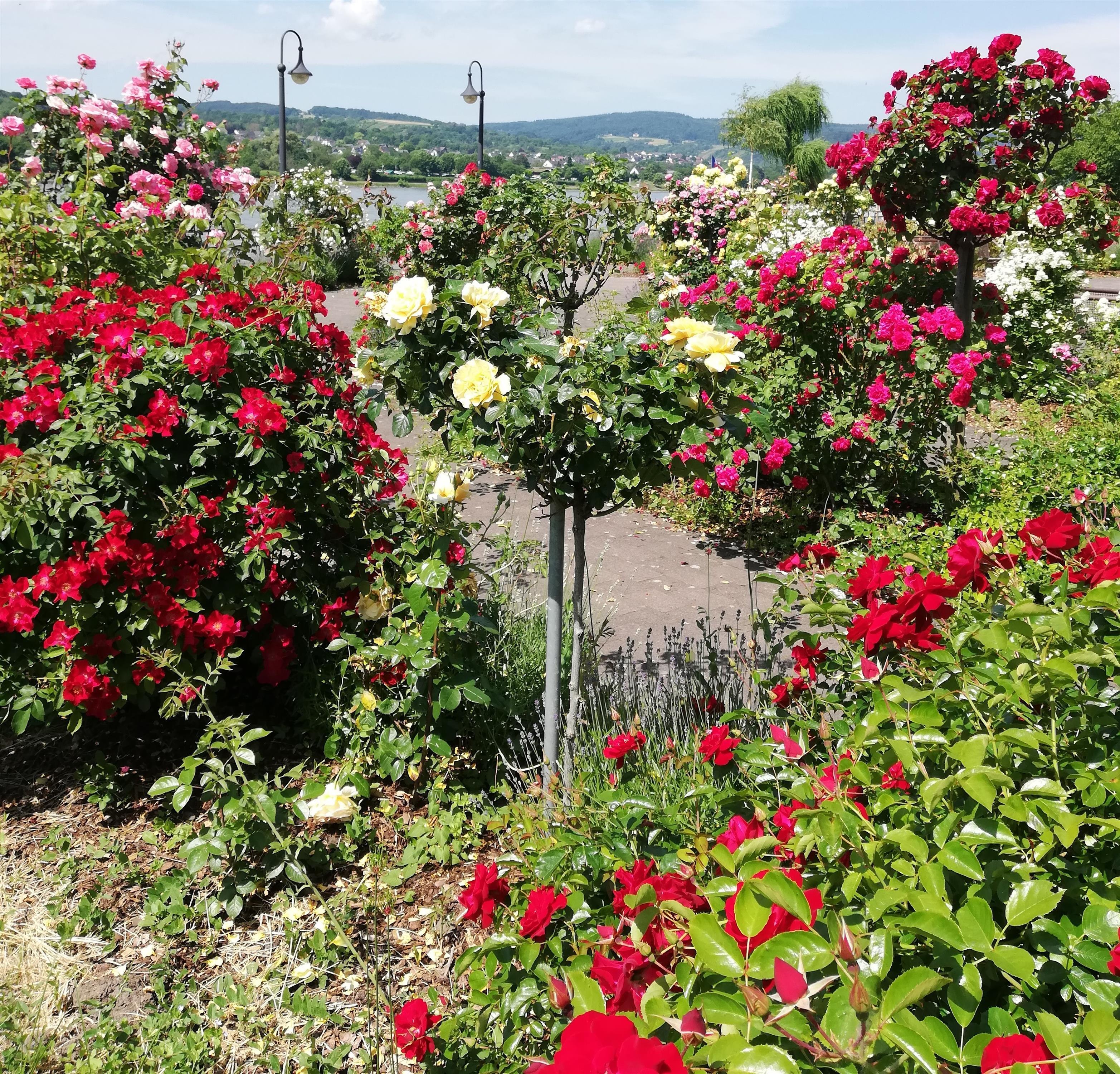 Der Rosengarten mit den neu gestalteten Bodo-Ebhardt-Anlagen ist ein weitläufiger Park am Braubacher Rheinufer und zeichnet sich durch eine Vielzahl von Rosenbeeten aus.