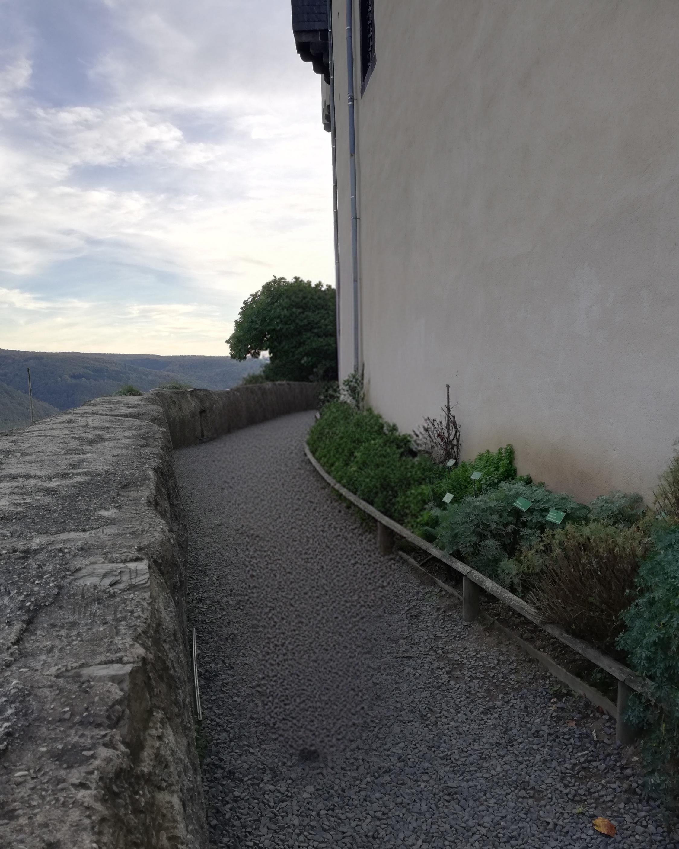 There is a botanical garden of the Middle Ages at Marksburg Castle, which is part of the World Heritage Garden Route in the Upper Middle Rhine Valley. The approximately 500 square meter demonstration garden is based on medieval garden culture and stretches along the walls of the Zwinger complex. Created in 1967, the garden displays around 150 different plant species that were cultivated and used in the Middle Ages. These include supposed witch and magic plants as well as medicinal and aromatic plants. Signs provide information about the old names, the Latin technical terms and today's names. Access is only possible as part of a guided tour.